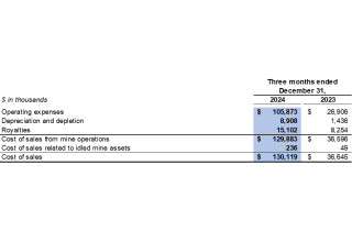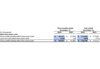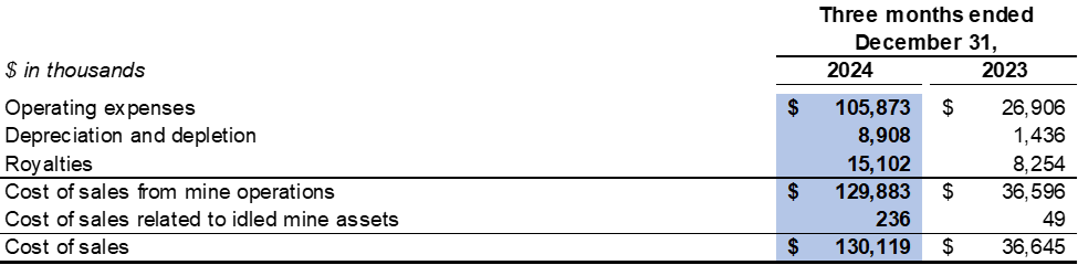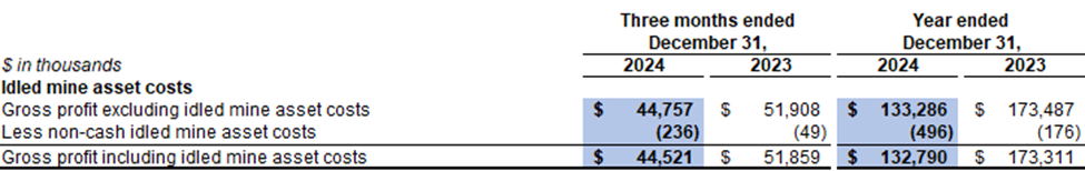 Cost of sales related to idled mine assets in the fourth quarter of 2024 included $0.2 million related to depreciation expenses for idled equipment (fourth quarter of 2023: $0.1 million).