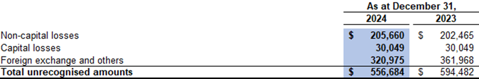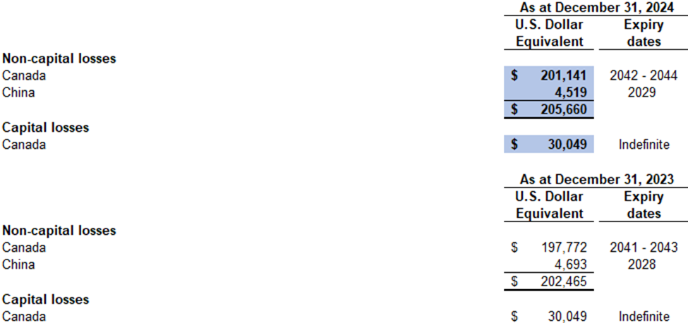 Potentially dilutive items not included in the calculation of diluted earnings per share for the year ended December 31, 2024 include the underlying shares comprised in the convertible debenture that were anti-dilutive.