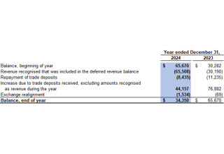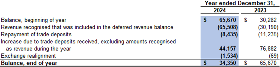 At December 31, 2024, the Company had deferred revenue of $34,350, which represents cash prepayments from customers for future coal sales (2023: $65,670).