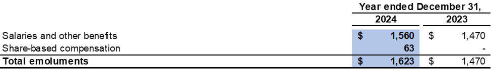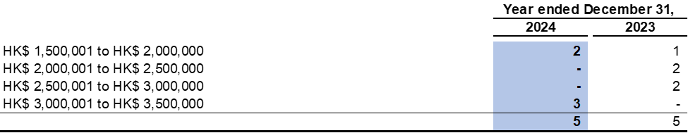 The five highest paid individuals included three directors of the Company for the year ended December 31, 2024 (2023: three directors). The emoluments of the five highest paid individuals are as follows: