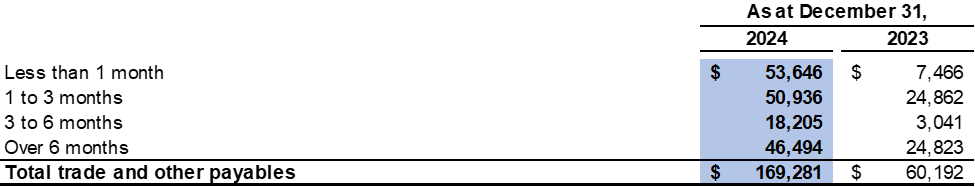Included in the working capital deficiency as at December 31, 2024 are significant obligations, represented by trade and other payables of $169.3 million and the additional tax and tax penalty of $43.8 million.