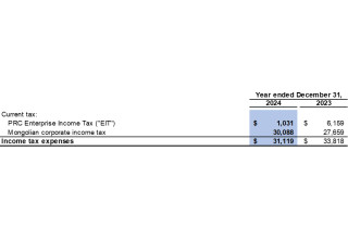 As at December 31, 2024, the Company recorded an additional tax and tax penalty in the amount of $45.5 million (2023: $85.1 million), which consists of a tax penalty payable of $26.5 million (2023: $75.0 million) and a provision for additional late tax penalty of $19.0 million (2023: $10.1 million). As a result of the Revised Re-assessment Result, the Company recorded a reversal of additional tax and tax penalty of $48.5 million in 2024 (2023: $nil). To date, the Company has paid the MTA an aggregate of $1.7 million in relation to the aforementioned tax penalty. The Company anticipates paying down the outstanding amount of the tax and tax penalty from cash generated from operations in the normal course. According to Mongolian tax law, the Mongolian tax authority has a legal authority to demand payment of the outstanding amount of the Revised Re-assessment Result from the Company at its discretion.