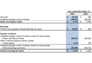 The financial figures in respect of the Company's consolidated statements of financial position, consolidated statements of comprehensive income and the related notes thereto for the year ended December 31, 2024, as set out in this press release have been agreed by the Company's independent auditors, BDO Limited, to the amounts set out in the Company's audited consolidated financial statements for the year.