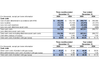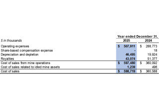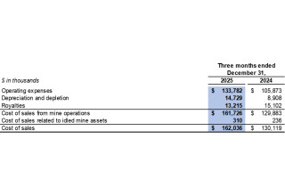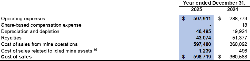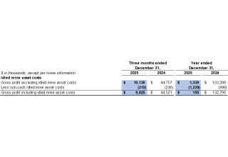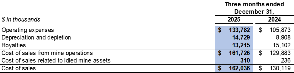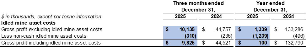 Cost of sales related to idled mine assets in the fourth quarter of 2025 included $0.3 million related to depreciation expenses for idled equipment (fourth quarter of 2024: $0.2 million).