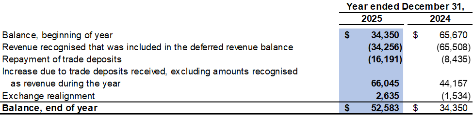 At December 31, 2025, the Company had deferred revenue of $52,583, which represents cash prepayments from customers for future coal sales (2024: $34,350).