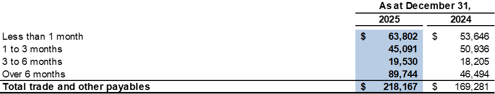 The aging of the Company's trade and other payables, based on invoice date, is as follows: