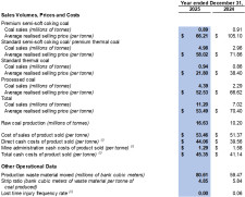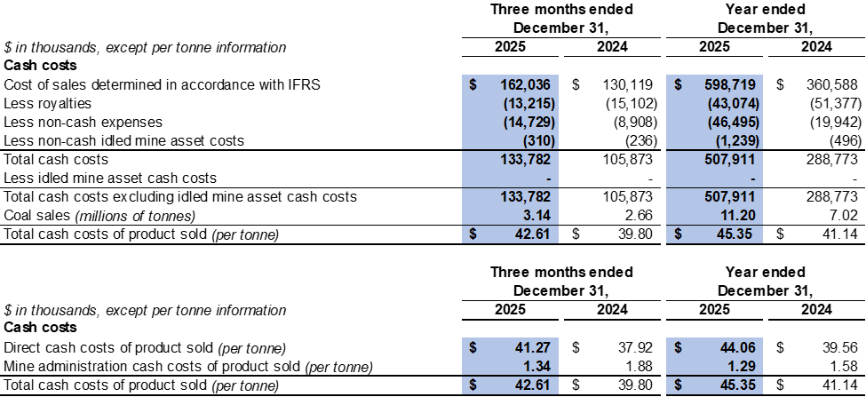 The Company's unit cost of sales of product sold was $53.5 per tonne in 2025 compared to $51.4 per tonne in 2024. The increase was due to the change in product mix year-over-year, as the Company sold more processed coal with higher production costs.