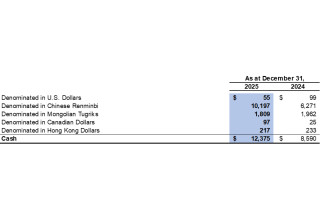 Forward-looking information is based on certain factors and assumptions described below and elsewhere in this press release, including, among other things: the current mine plan for the Ovoot Tolgoi mine; mining, production, construction and exploration activities at the Company's mineral properties; the costs relating to anticipated capital expenditures; the capacity and future toll rate of the paved highway; plans for the progress of mining license application processes; mining methods; the Company's anticipated business activities, planned expenditures and corporate strategies; management's business outlook, including the outlook for 2026 and beyond; currency exchange rates; operating, labour and fuel costs; the ability of the Company to raise additional financing; negotiating a constructive understanding and agreement with the Plenipotentiary Representative of the Mongolian Government; the anticipated royalties payable under Mongolia's royalty regime; the ability of the Company to settle the tax penalty payable of $26.5 million imposed by the MTA and a provision for additional late tax penalty of $19.0 million; the future coal market conditions in China and the related impact on the Company's margins and liquidity; the anticipated demand for the Company's coal products; future coal prices, and the level of worldwide coal production. While the Company considers these assumptions to be reasonable based on the information currently available to it, they may prove to be incorrect. Forward-looking statements are subject to a variety of risks and uncertainties and other factors that could cause actual events or results to differ materially from those projected in the forward-looking statements. These risks and uncertainties include, among other things: the uncertain nature of mining activities, actual capital and operating costs exceeding management's estimates; variations in mineral resource and mineral reserve estimates; failure of plant, equipment or processes to operate as anticipated; the possible impacts of changes in mine life, useful life or depreciation rates on depreciation expenses; risks associated with, or changes to regulatory requirements (including environmental regulations) and the ability to obtain all necessary regulatory approvals; the potential expansion of the list of licenses published by the Government of Mongolia covering areas in which exploration and mining are purportedly prohibited on certain of the Company's mining licenses; the Government of Mongolia designating any one or more of the Company's mineral projects in Mongolia as a Mineral Deposit of Strategic Importance; the Company's ability to successfully negotiate a constructive understanding and agreement with the Plenipotentiary Representative of the Mongolian Government; the risk that the Company is unable to successfully settle the tax penalty payable of $26.5 million imposed by the MTA and a provision for additional late tax penalty of $19.0 million (as described under section "Significant Events and Highlights" of this press release under the heading entitled " Additional Tax and Tax Penalty Imposed by the MTA"); possible impact of changes to the inputs to the valuation model used to value the embedded derivatives in the Convertible Debenture; the risk of the Company or its subsidiaries default under its existing debt obligations, including the Convertible Debenture, the 2026 March Deferral Agreement and the 2025 Bank Loan; the impact of amendments to, or the application of, the laws of Mongolia, China and other countries in which the Company carries on business; modifications to existing practices so as to comply with any future permit conditions that may be imposed by regulators; delays in obtaining approvals and lease renewals; the risk of fluctuations in coal prices and changes in China and world economic conditions; customer credit risk; cash flow and liquidity risks; risks relating to the Company's decision to suspend activities relating to the development of the Ceke Logistics Park project, including the risk that its investment partner may initiate legal action against the Company for failing to comply with the underlying agreements governing project development; risks relating to the ability of the Company to enhance the operational efficiency and the output throughput of the washing facilities at Ovoot Tolgoi and risks relating to the Company's ability to raise additional financing and to continue as a going concern. This list is not exhaustive of the factors that may affect any of the Company's forward-looking statements.