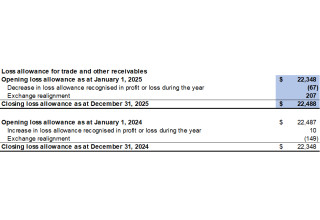 The closing allowances for trade and other receivables as at December 31, 2025 reconcile to the opening loss allowances as follows: