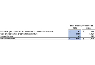 Based on the Company's valuation as at December 31, 2025, the fair value of the embedded derivatives decreased by $62 (2024: decreased by $298) compared to December 31, 2024. The decrease was recorded as finance income for the year ended December 31, 2025.