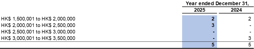The emoluments for the five highest paid individuals were within the following bands: