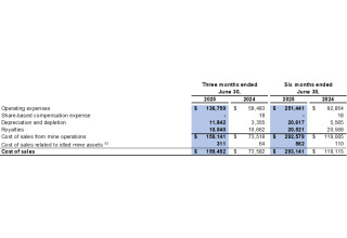 Cost of sales related to idled mine assets for the second quarter of 2025 included $0.3 million related to depreciation expenses for idled equipment (second quarter of 2024: $0.1 million).