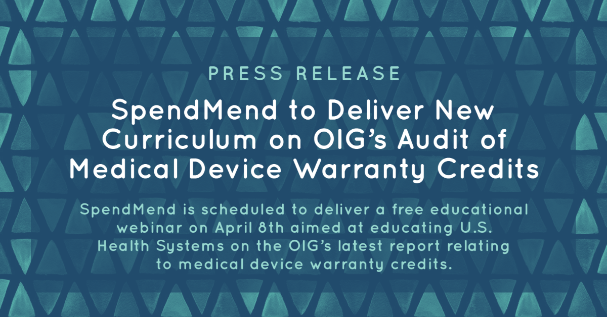 SpendMend to Deliver New Curriculum on OIG's Audit of Medical Device Warranty Credits