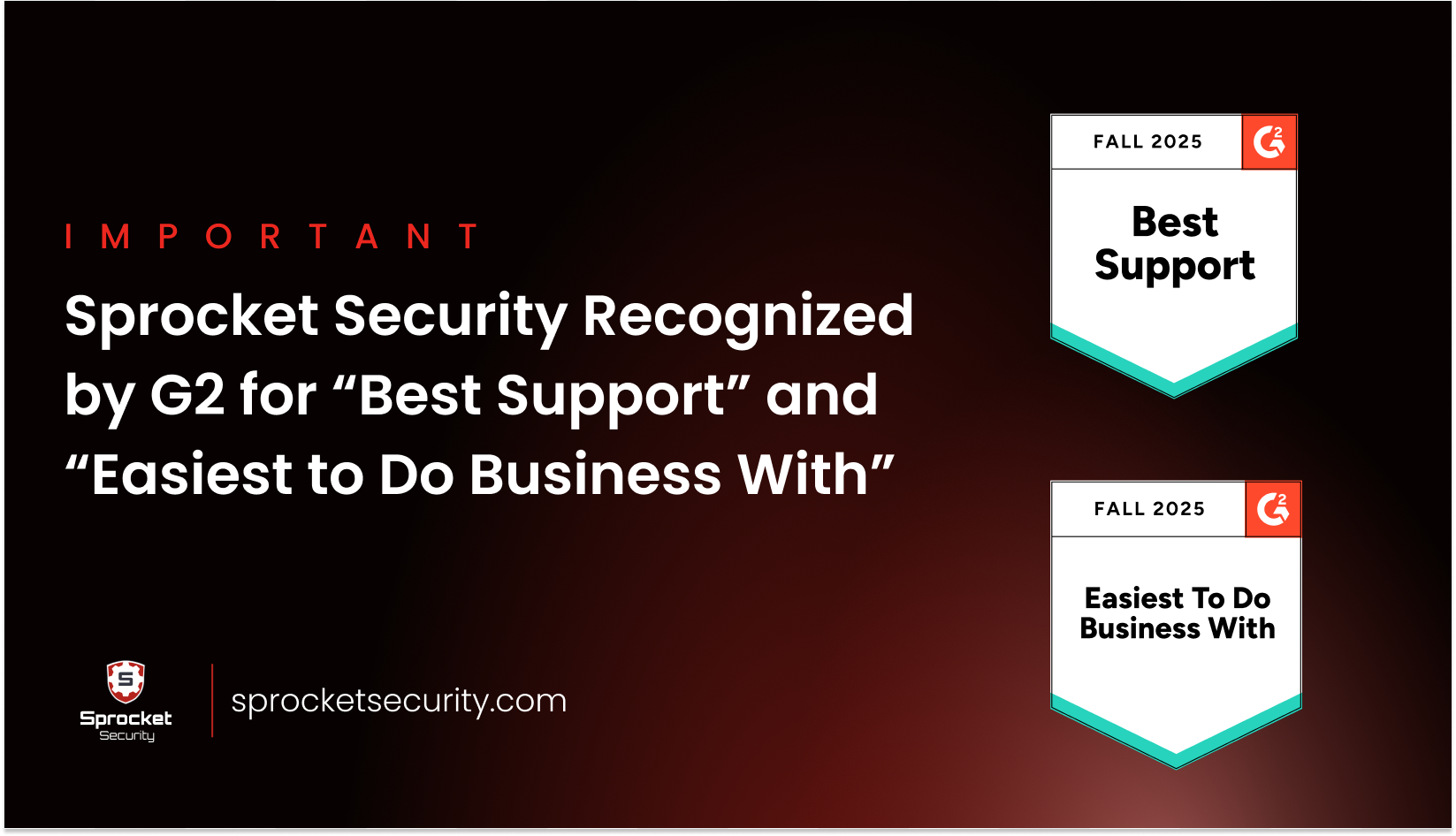 MADISON, Wis., September 11, 2025 (Newswire.com) - Sprocket Security is excited to announce that it has officially been recognized for "Best Support" and "Easiest to Do Business With" in G2's Fall 2025 Relationship Index for Penetration Testing. This placement reflects the genuine satisfaction of our users and underscores our growing impact in the cybersecurity community, as well as the fundamental importance of Sprocket's relationship with its clients.