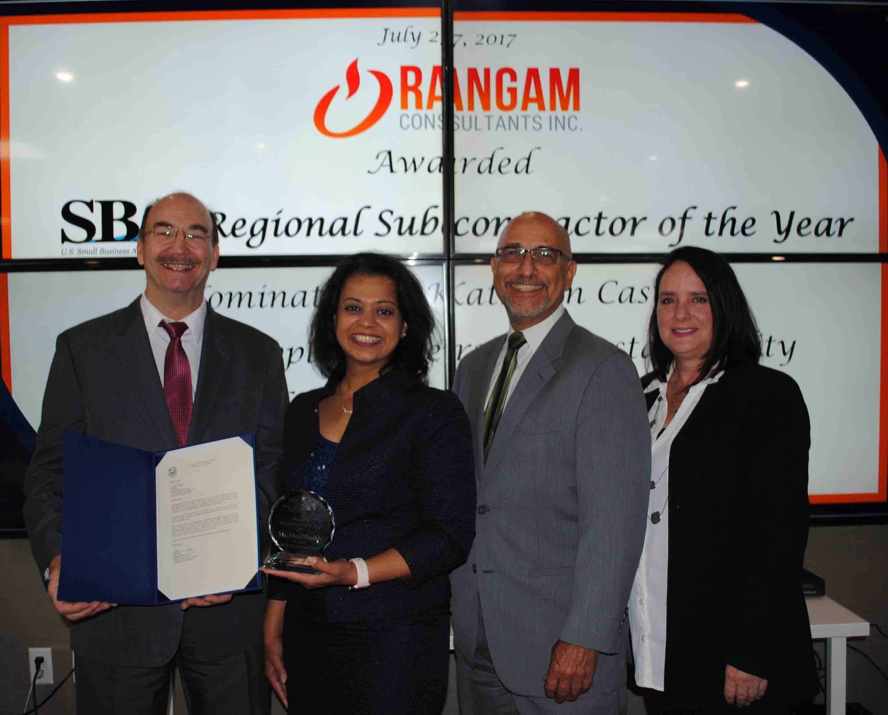 SOMERSET, N.J., August 2, 2017 (Newswire.com) - Out of a nationwide pool of 10 competing subcontractors, it was Rangam Consultants, Inc. that won the 2017 Regional Subcontractor Award from the U.S. Small Business Administration — a federal agency protecting and advancing the interests of small businesses.