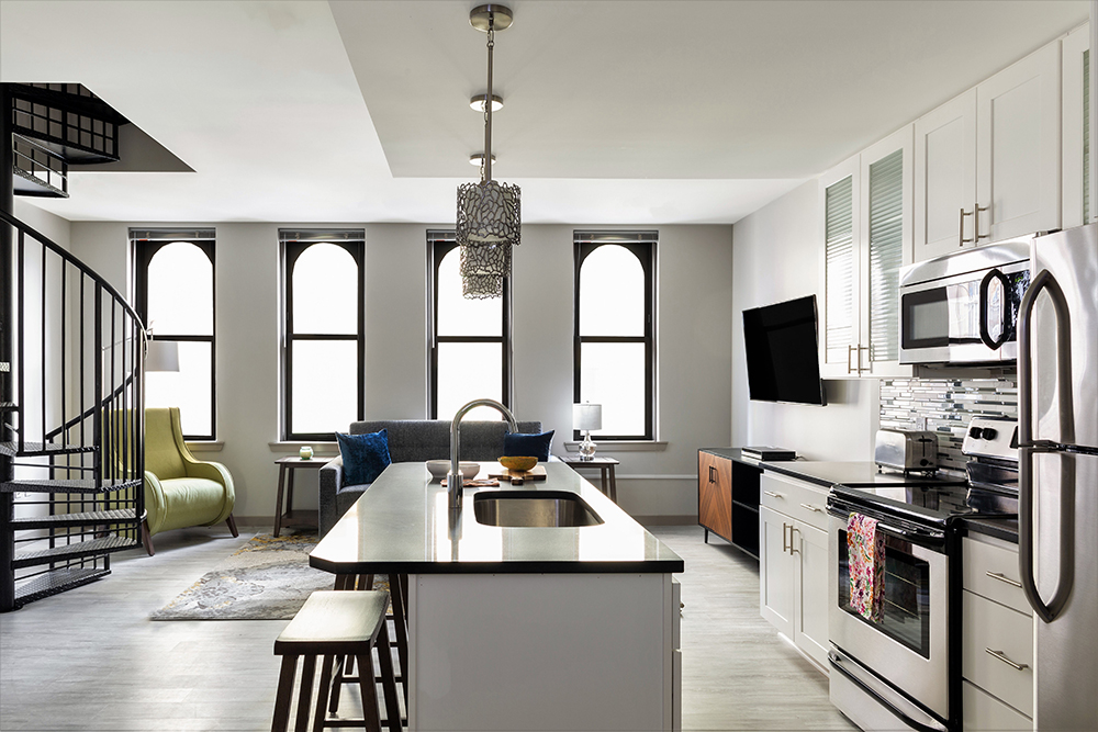 Each Stay Alfred one- and two-bedroom travel apartment will offer guests conveniences like dedicated living spaces, a full kitchen, a washer and dryer, free WiFi and the ease of a self-guided check-in process. In addition, guests will have access to the upscale building amenities of each unique property.