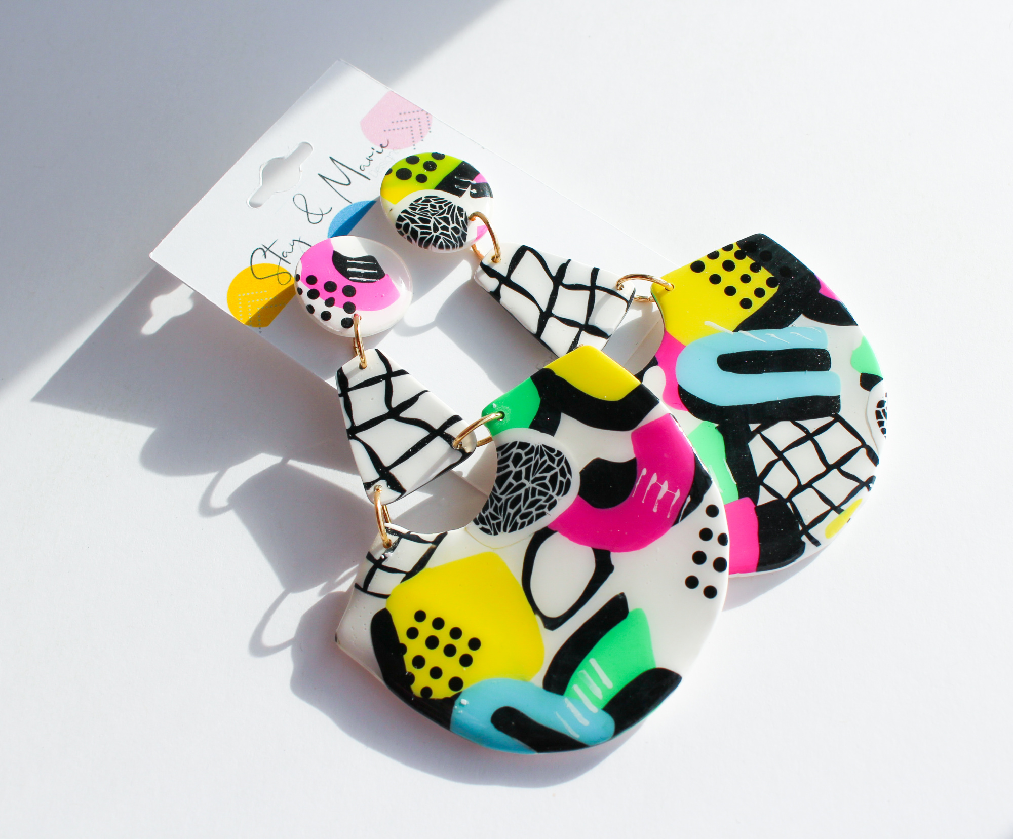 Tags: etsy seller, etsy shop owner, handcrafted earrings, jewelry designer, memphis design, polymer clay earrings, polymer clay jewelry, wearable art