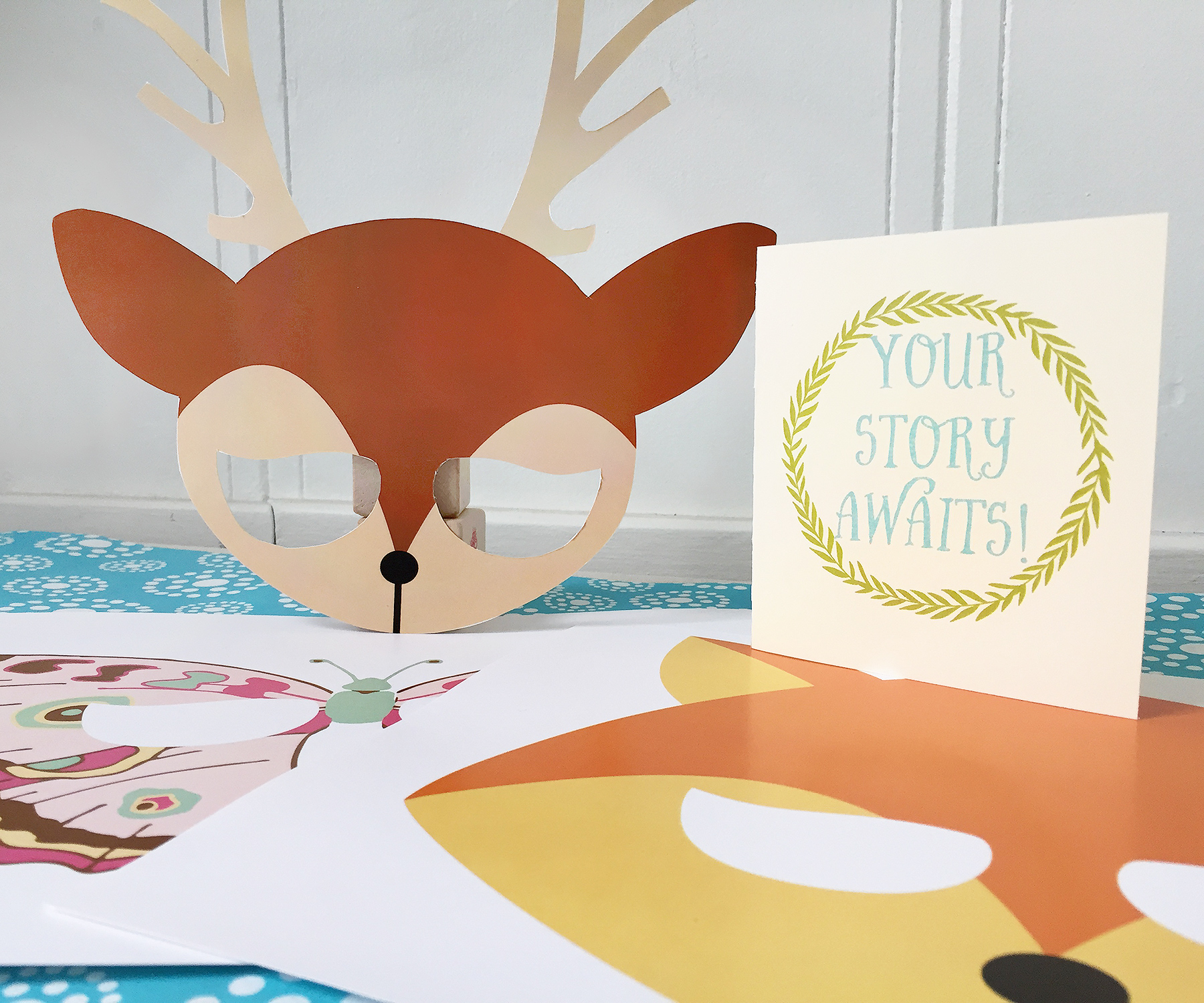 “With electronics playing such a big part in our children’s lives, I see children, my own included, moving away from traditional play. Our products offer a return to simplicity that requires nothing but their own minds. Each product, from art prints to masks, comes with a story. One that a child can continue in written or play form. Parents can play with their child, or just bond over silly stories they can make up with our journal or art prints.” says owner and illustrator Carey Bunker.