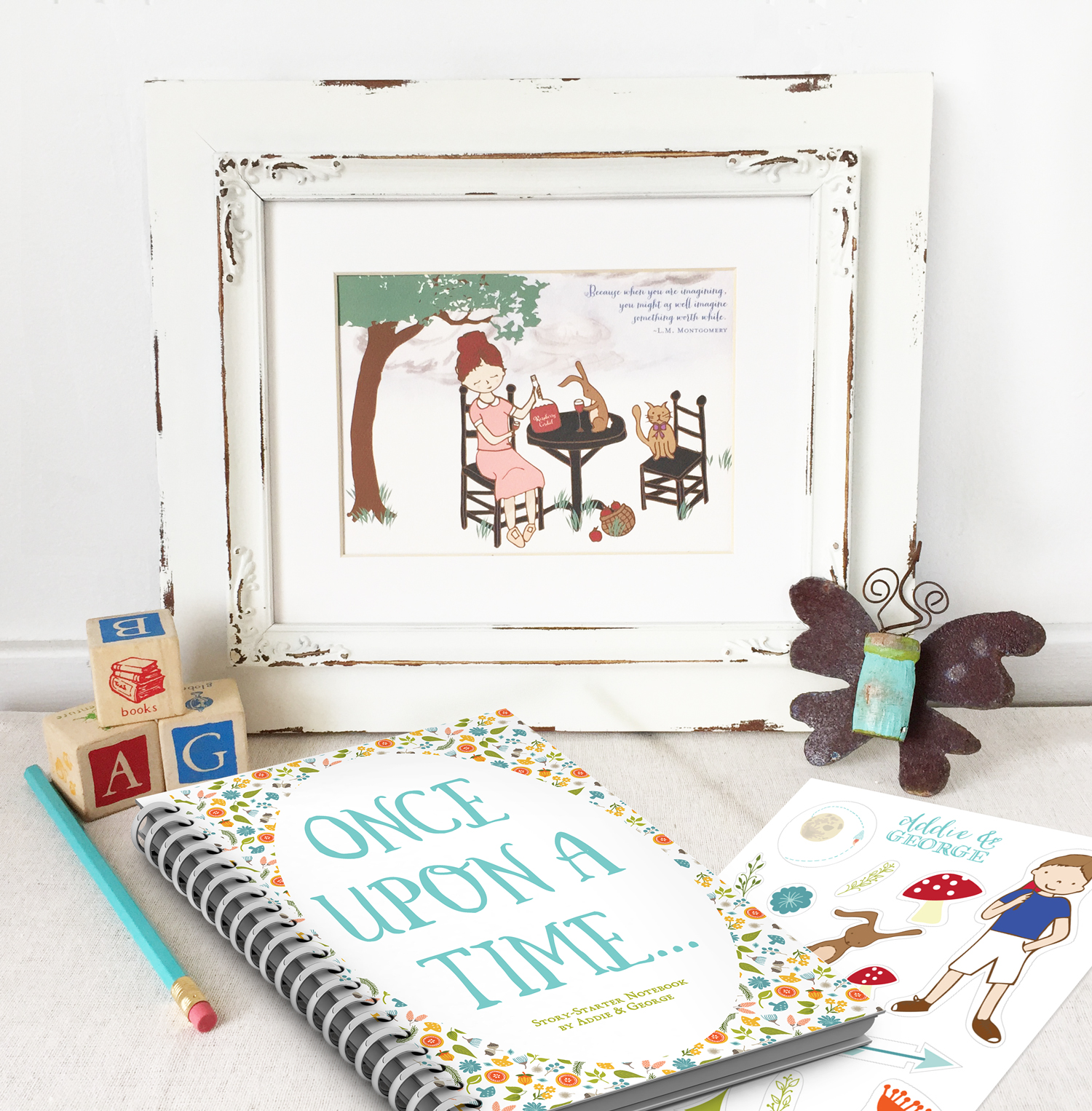 About Addie & George: Addie & George is a one-of-a-kind play-based company featuring Story Starter art prints and gift company located in central Vermont. Created around two characters born from the illustrator’s imagination, siblings Addie and George and their friends encourage children to get in touch with their inner storytellers and use those stories for play.