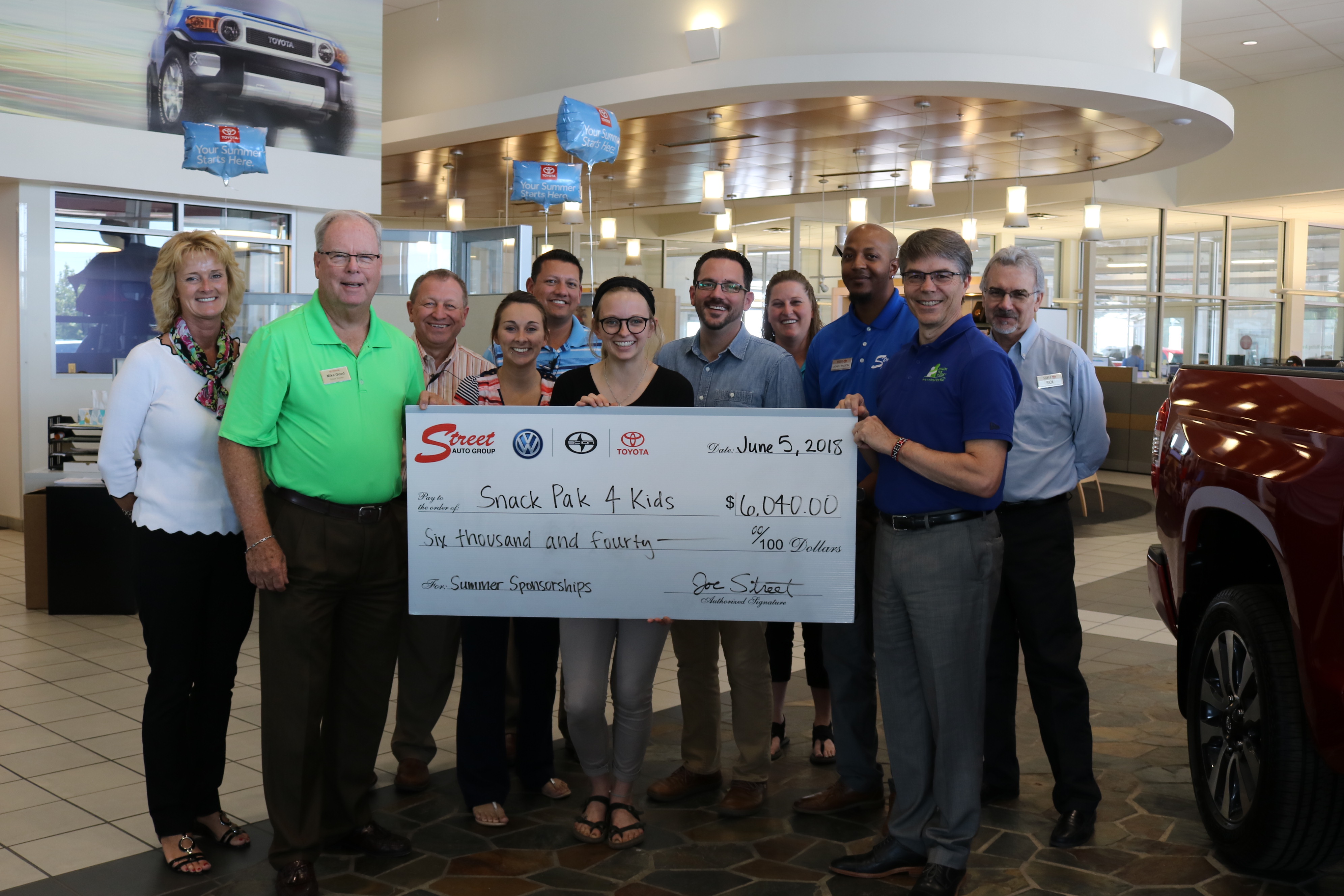 Street Toyota and Employees Raise Funds for Snack Pak 4 Kids Benefiting Student's Food for the Summer Program