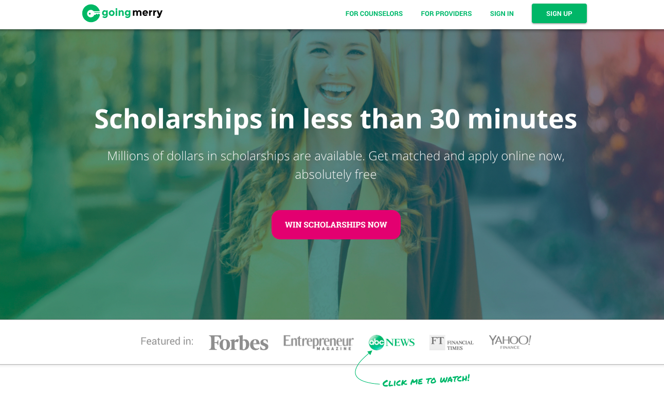 With a presence in over 6,000 high schools across the country, Going Merry has become a single destination for scholarship seekers to get matched and apply online, absolutely free.