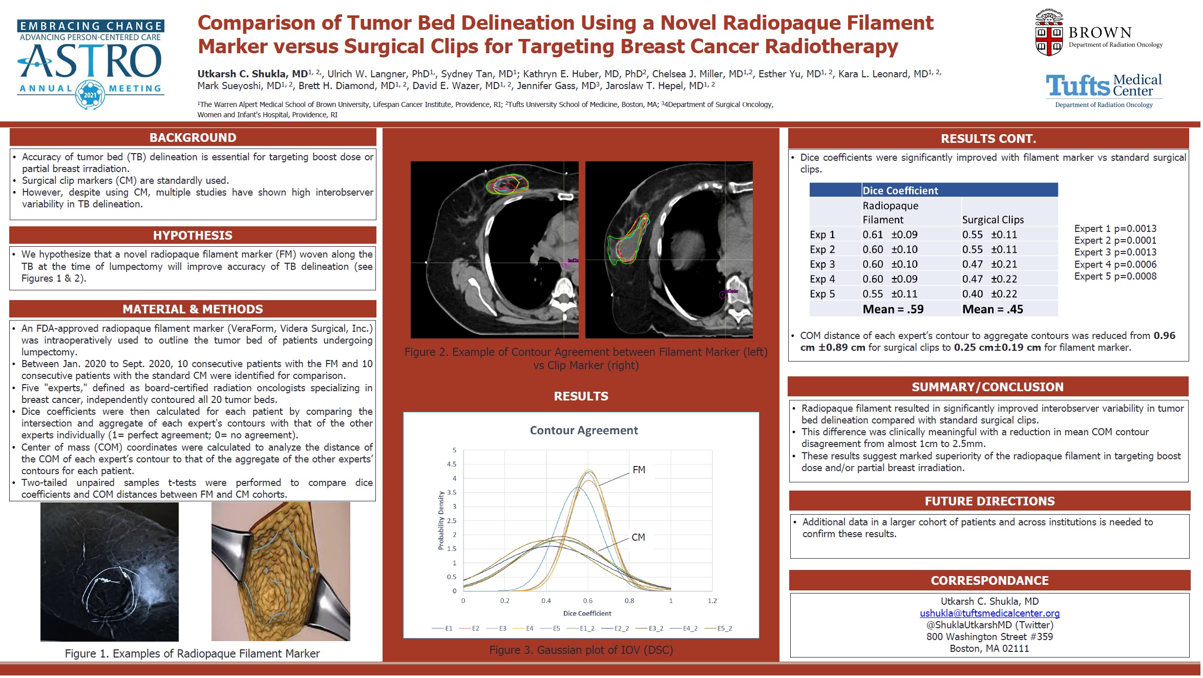 "Clear targeting of the tumor bed is essential for radiation therapy," stated the lead author and radiation oncologist, Jaroslaw Hepel, MD, Director of Stereotactic Radiosurgery at Rhode Island Hospital and Associate Professor of Radiation Oncology at The Warren Alpert Medical School of Brown University. "This study demonstrates significant and clinically meaningful improvement in the reproducibility of tumor bed identification as compared with surgical clips among five different radiation oncologists," Dr. Hepel continued.
