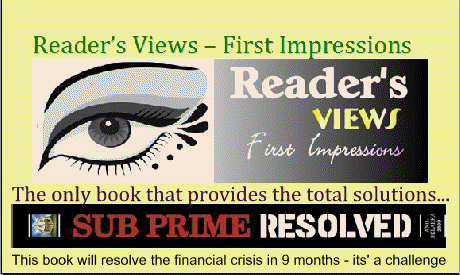 We are pleased to announce the release of new book "SUB PRIME RESOLVED" in USA and Asia. It offers total solution to all the problems that caused the worst ever recession since 1930. Click Chapter Index here for full content details in slide-show