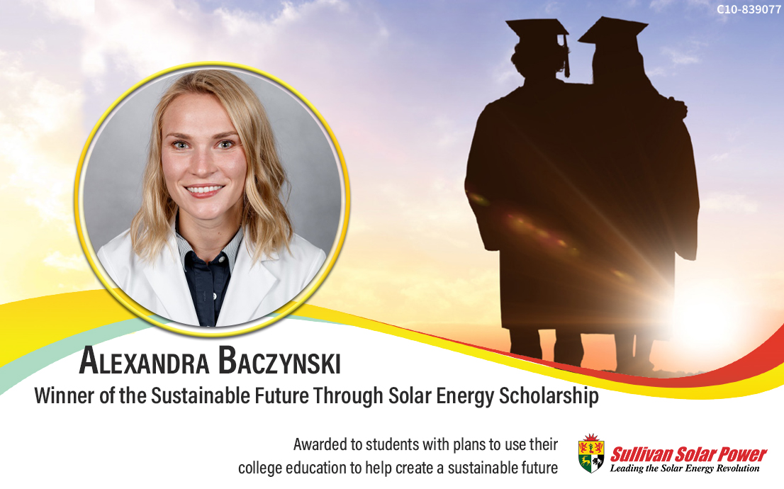 SAN DIEGO, February 4, 2020 (Newswire.com) - Sullivan Solar Power has announced the winner of their annual student scholarship program. The 2019 scholarship will be awarded to Ms. Alexandra Baczynski who is beginning medical school at the University of Illinois in Chicago, as part of the university's Urban Medicine Program. Ms. Baczynski was selected from a group of over 160 applicants, and will receive $2,000 towards her studies.