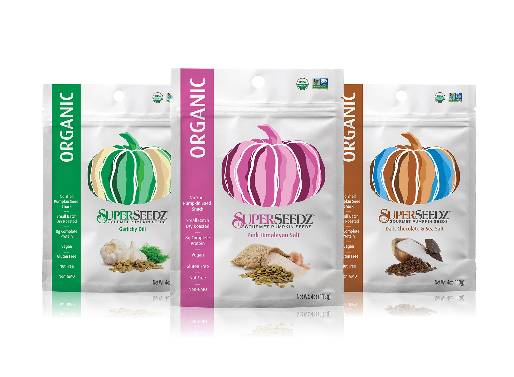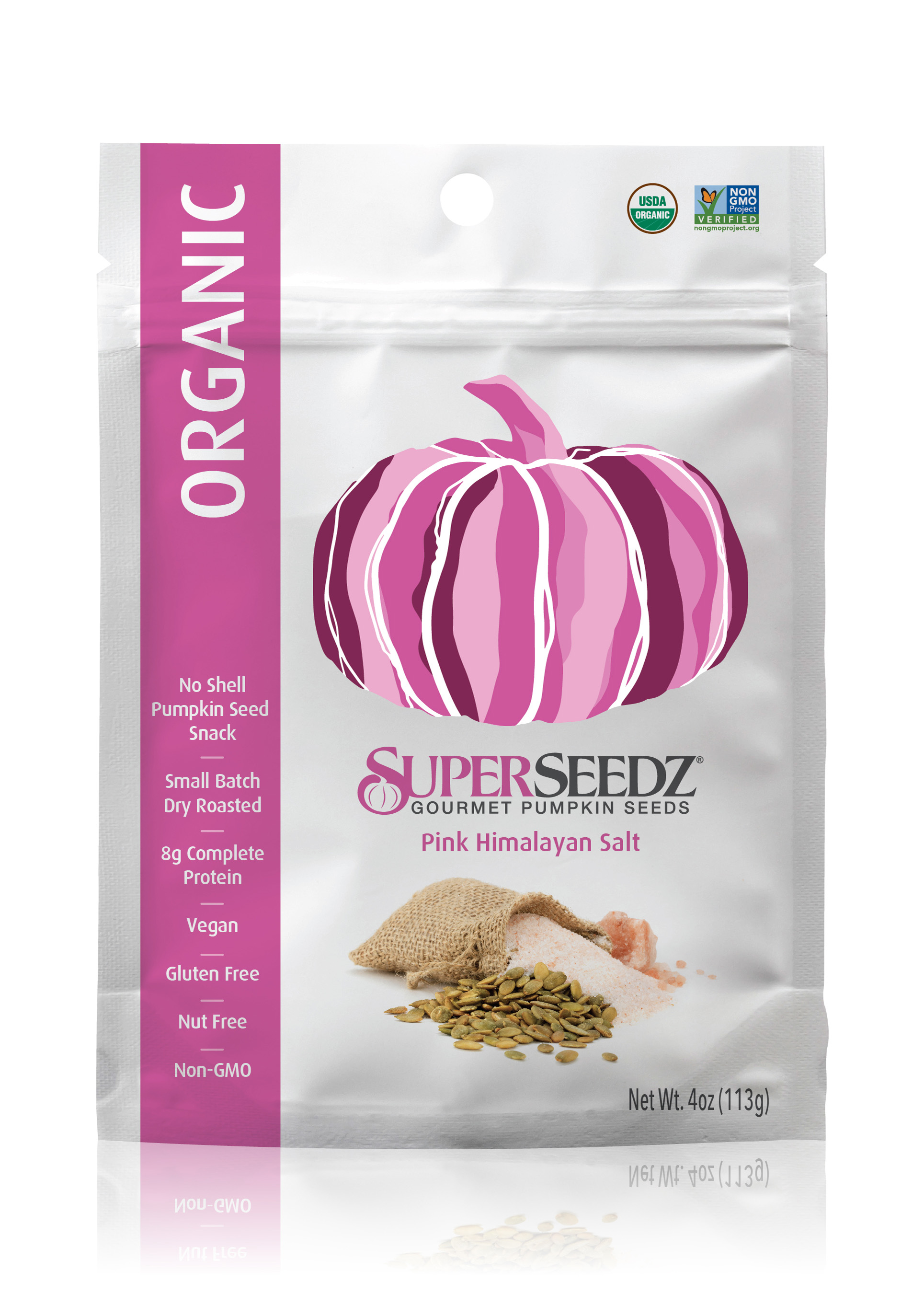 The three new SuperSeedz organic flavors, Pink Himalayan Salt, Garlicky Dill and an indulgent Dark Chocolate & Sea Salt item, were introduced earlier in the year. Each is Organic certified, Non-GMO Project verified, vegan, allergy-friendly and will feature up to eight grams of complete, plant-based protein.