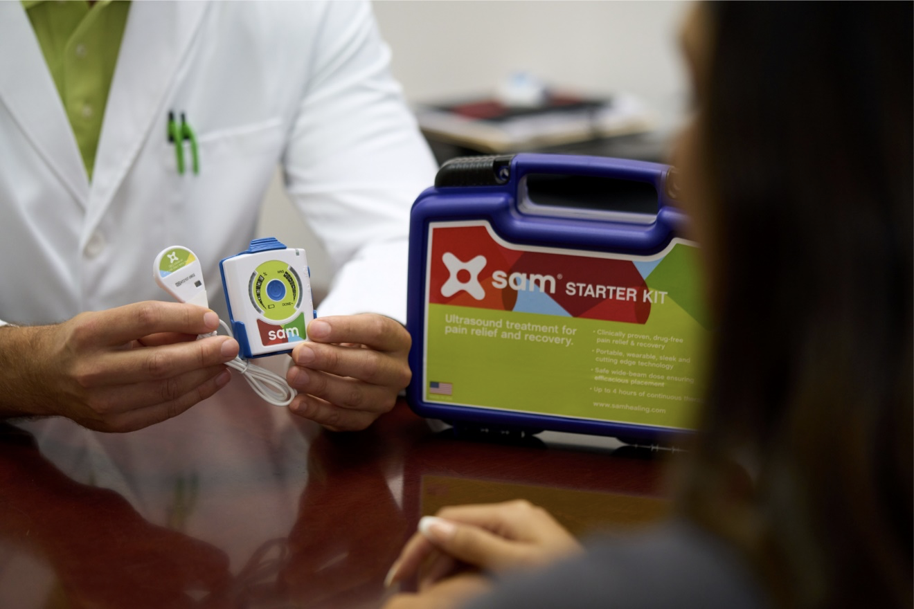 The FDA-cleared sam® device uses low-intensity, long-duration ultrasound, which promotes better patient outcomes than traditional ultrasound therapy. By inhibiting inflammation and increasing the rate of tissue regeneration, angiogenesis, and nutrient exchange, it helps people heal faster and return to work, sports or any regular daily activity.