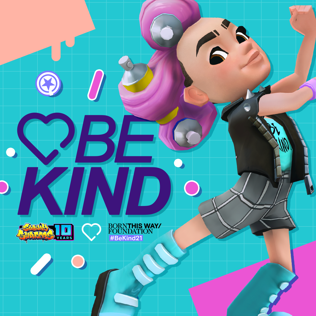 "We know the transformative impact kindness has on every aspect of our lives, and through our #BeKind21 movement, we help uplift the many ways our communities are expressing kindness to themselves and each other," said President and Co-founder of Born This Way Foundation Cynthia Germanotta. "We're honored that Subway Surfers has joined us for this initiative and embraced inclusivity, diversity, and kindness - pillars Born This Way Foundation holds dearly."