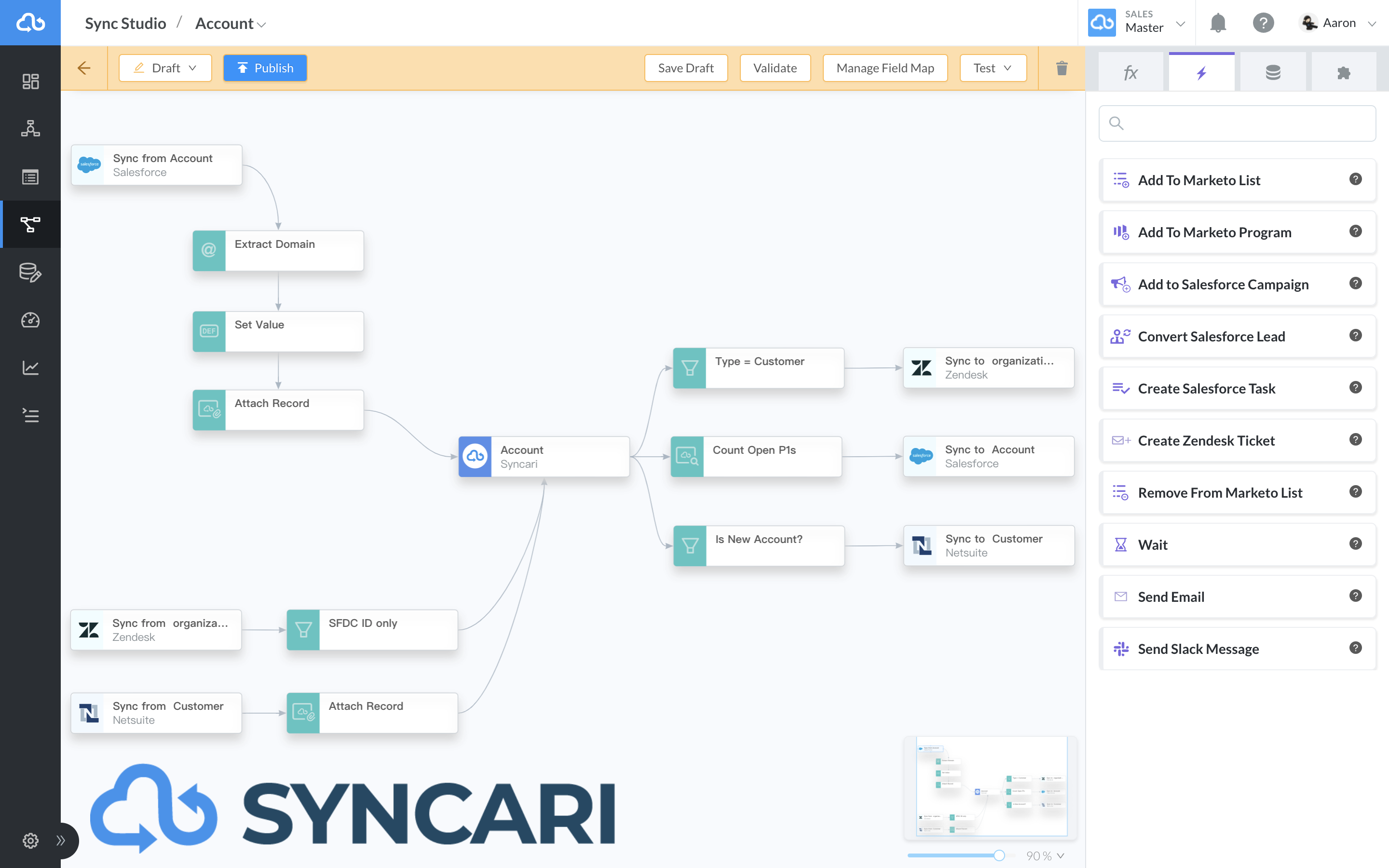 Syncari's patent-pending multi-directional sync engine automates and governs the flow of data across the enterprise. By enabling operations professionals to easily stitch together disparate systems into one unified data model (which, until now, required a team of experts and a 6- to 12-month project), Syncari has also drastically simplified data normalization, transformation, and management — making data automation accessible to everyone. With Syncari ensuring all operational databases are in sync, marketing can create more qualified demand by targeting the right people in the right accounts, sales can accelerate deal cycles with a complete customer view, and customer success can identify advocates and prevent unwanted churn.