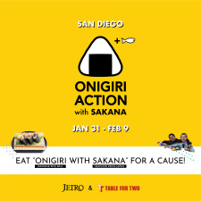 ONIGIRI ACTION with SAKANA is a social good campaign connecting the simple act of taking a photo with helping to feed school children in need. The campaign highlights Onigiri (rice balls), a traditional Japanese comfort food made with love to share with others, and Sakana, seafood from Japan. During the campaign, 10 participating restaurants in San Diego will feature new "Onigiri" menu items made with rice and seafood from Japan. When ordering one of the onigiri menu items, take a photo of it and post on social media using #OnigiriAction and #JapaneseSeafood to provide 5 school meals to children in need in the United States and East Africa.