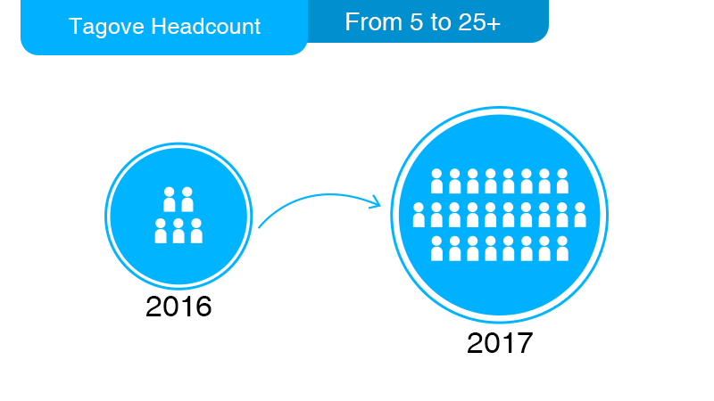 Tagove started operating in late 2016, with a headcount of five, but slowly they have grown to 25 with different skill sets and experience. The important thing is that most of them are younger than 30 years old and they are accelerating the company growth with drive and enthusiasm.