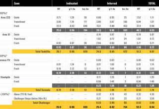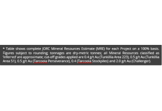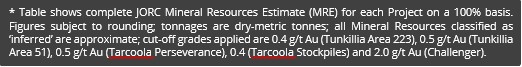 The previously reported Tarcoola MRE (as at November 2020) is shown below at Table 2.