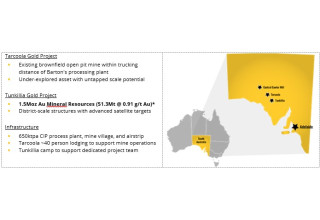Barton has rapidly grown the neighbouring Tunkillia Gold Project ( Tunkillia ) to a JORC MRE of 1.5Moz Au (51.3Mt @ 0.91 g/t Au) over the past two years. [2] A preliminary Scoping Study is now underway to test a prospective 5Mtpa processing model, and to identify key cost drivers for subsequent optimisation.