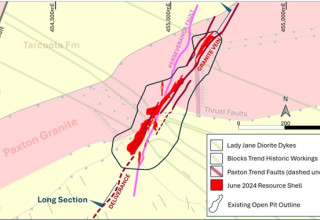 Several small mafic dykes (Lady Jane Diorites) cross-cut the deposit. The northwest and northeast trending dykes appear to control narrow mineralised zones along the contacts. Due to their small volume and associated mineralisation the Lady Jane Diorites were not depleted from the mineral resource estimate.