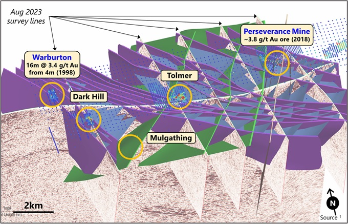 The objective of this program is to test for the existence of interpreted structures, validate and refine new methodologies and techniques that Barton is developing for exploration under cover in the region, and to define a new regional structural model. Barton also hopes to identify new potential sources of higher-grade mineralisation similar to that produced in the area of and surrounding the Perseverance Mine.