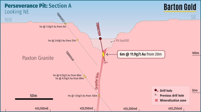 Barton is now evaluating the Tarcoola Goldfield for potential higher-grade mineralisation. In December 2023 and April 2024 Barton drilled 1,688m (26 holes) in the Perseverance pit floor, confirming high-grade extensions of pit floor mineralisation grading up to ~12 g/t Au, and new structures below the open pit. [3]