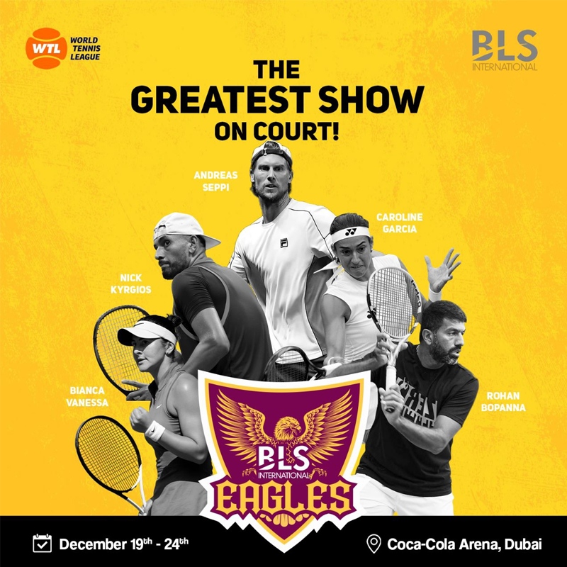 DUBAI, Arab Emirates, December 23, 2022 (Newswire.com) - Team Eagles, owned by BLS International Services Ltd., is participating in this season of the World Tennis League taking place from the 19th to the 24th of December 2022 in the Coca-Cola Arena, Dubai. World Tennis League is an exemplary blend of sports and entertainment, making for a unique experience, featuring world-renowned tennis players along with some preeminent artists from around the globe. The players' lineup includes the legendary player Novak Djokovic, Iga Swiatek who has been currently ranked world No. 1 by the Women's Tennis Association (WTA), Dominic Thiem who has been ranked as high as world No. 3 in singles by the Association of Tennis Professionals, and Anett Kontaveit who is the highest-ranked Estonian player in history, among several others. The league will follow a never seen format by dividing these players into four different teams: Eagles, Kites, Hawks, and Falcons. These matches will be followed by some compelling concerts by DJs and performers like Tiesto, NE-YO, WIZKID, Mohammad Ramadan, Deadmaus, and Armin Van Buuren.