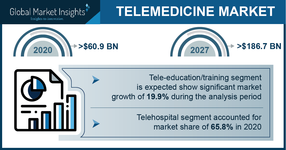 Telemedicine Market Revenue to Cross USD 186.7 Bn by 2027: Global Market Insights Inc.