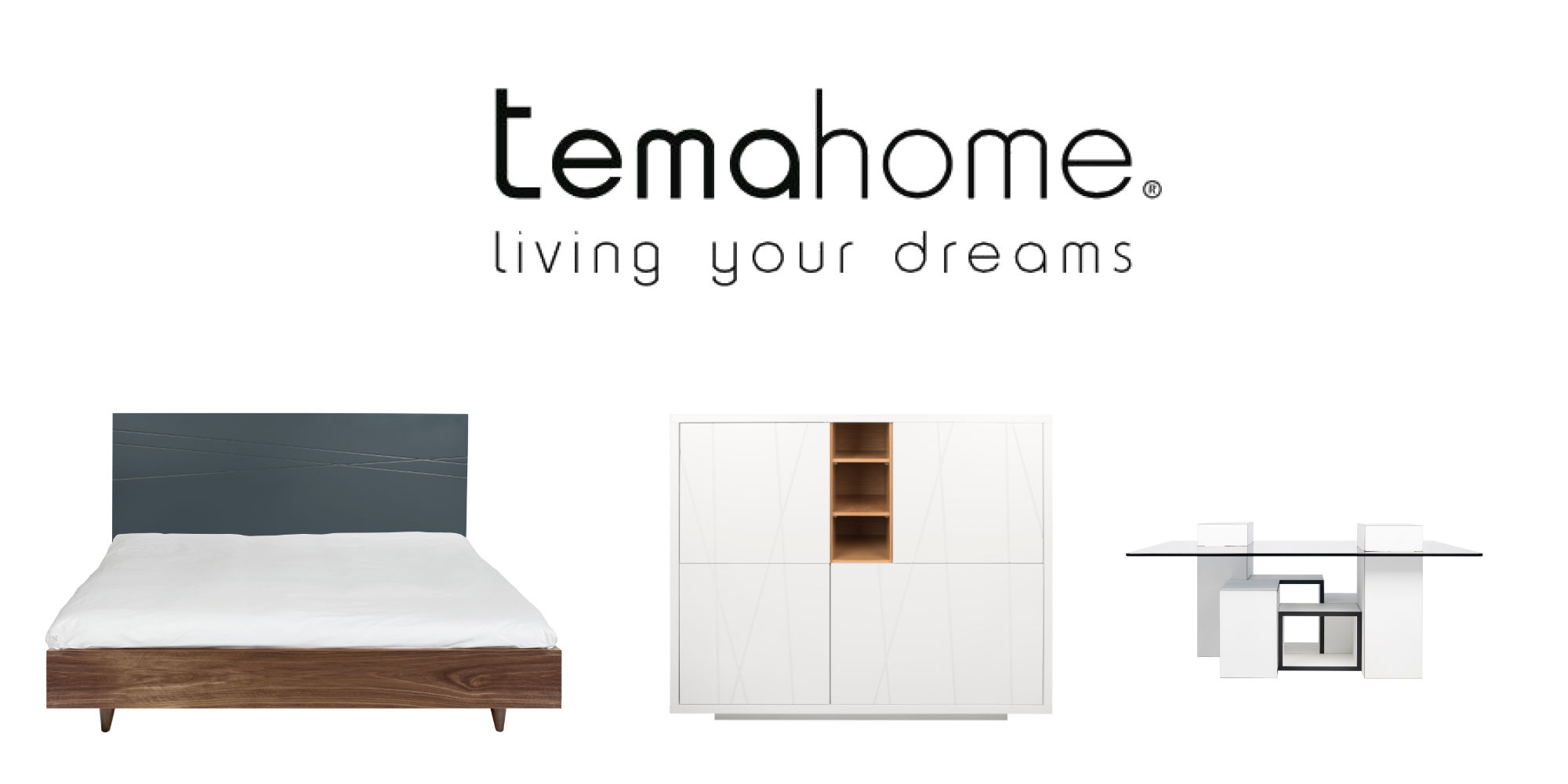 Rich woods like oak and walnut are coordinated with concrete and aluminum's finishes to create an industrial touch. Additional designs include comfort matte gray or cool pure white and marble finishes, resulting in TemaHome’s unmistakable style.