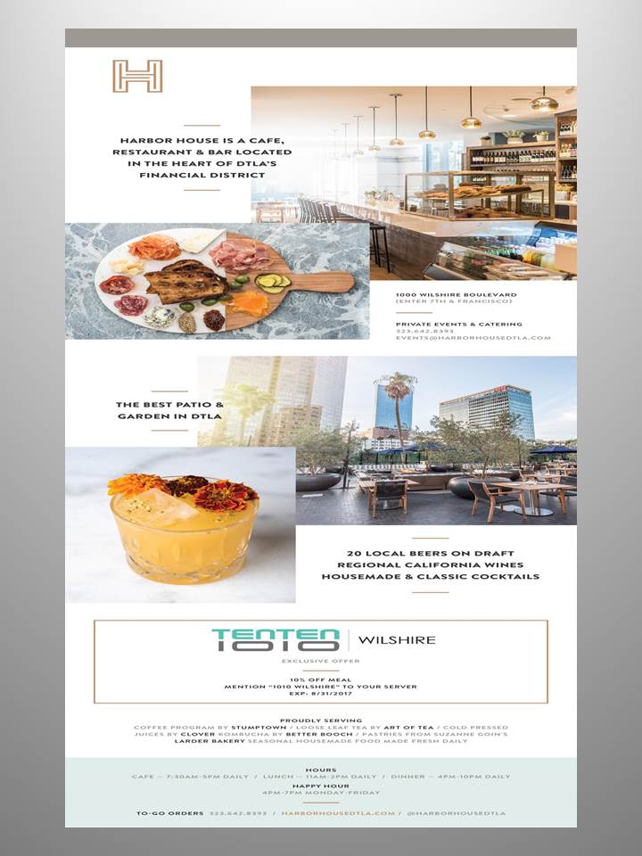 LOS ANGELES, August 23, 2017 (Newswire.com) - TENTEN Wilshire strives to bring tenants closer to the best of local businesses so that they can fully embrace the downtown lifestyle. Now, when tenants mention they are residents of 1010 Wilshire, they receive 10 percent off their meal at Harbor House Café Restaurant & Bar.