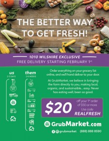 Los Angeles, California , February 7, 2017 (Newswire.com) - TENTEN Wilshire strives to bring tenants special offers from local stores and restaurants so that they can fully embrace the downtown lifestyle. Right now, tenants can enjoy free delivery from GrubMarket.com—a special TENTEN Wilshire exclusive. On top of that, GrubMarket.com is offering $20.00 off tenants’ first orders of $50.00 or more. Simply use the code “REALFRESH” to get the discount.