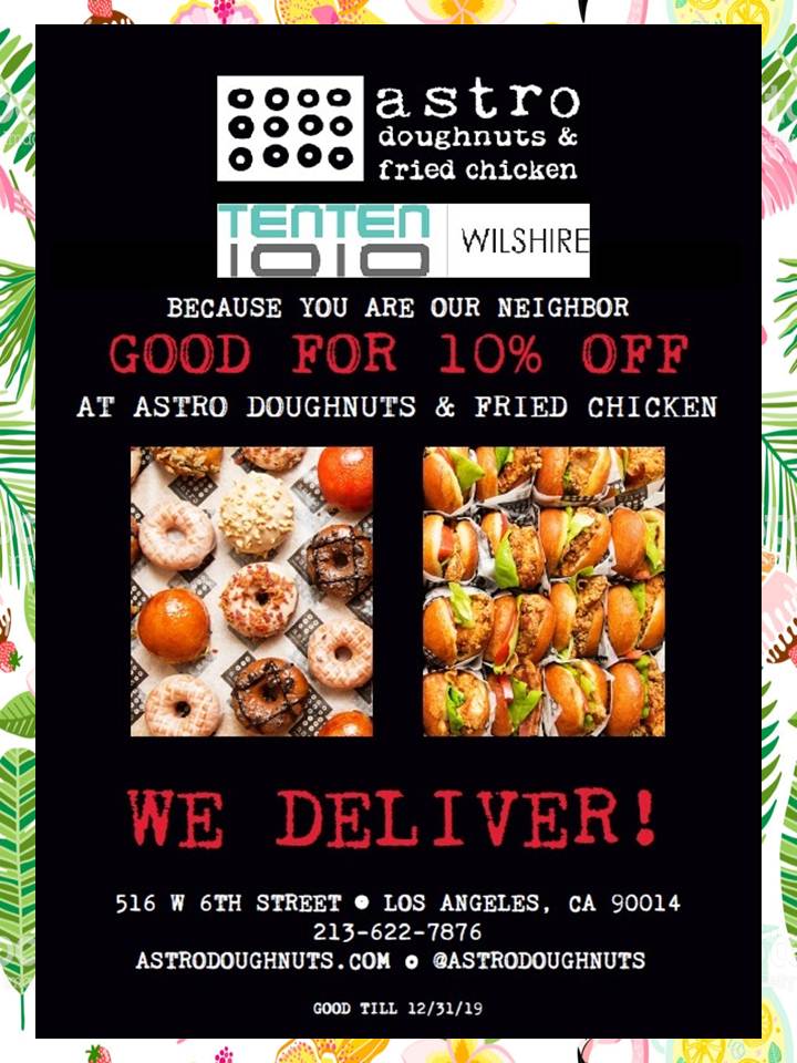 TenTen Wilshire Invites Its Tenants to Visit Local Business Astro Doughnuts & Fried Chicken to Receive a Discount on Their Next Order