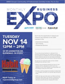 Co-hosted by the AMIDI Group, Hollywood Production Center, TENTEN Wilshire and Plug and Play, this is not your typical business expo. At Monthly Business Expo, you are a partnering community member. Expand your database. The entire event is designed to help your business flourish. As soon as you receive this invite: