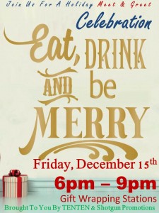 Los Angeles, California, December 12, 2017 (Newswire.com) - It’s time to wrap up the year and wrap up those presents, too. But don’t sit around on your living room floor tangled up in ribbons and Scotch tape. Get out and with friends at the Eat, Drink, and Be Merry Celebration—complete with gift-wrapping stations, back by popular demand. Raise a glass to the holidays up on the TENTEN Wilshire rooftop Friday, December 15, from 6:00 to 9:00 pm. The evening is brought to you in partnership with Shotgun Promotions who will be on hand to mix up classic cocktails and special recipes filled to the rim with holiday cheer and spiced just right for the season. TENTEN’s award-winning rooftop with outstanding city views and cozy, crackling fire pits was made for merry making—no better spot in town to drink, dance, mingle, play.