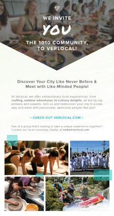 Los Angeles, California , November 22, 2016 (Newswire.com) - The people at Verlocal challenge the people at TENTEN to get out see parts of Los Angeles they never get to see, do things they always wish they could do, with people they never cross paths with in their workaday lives. Be part of a group that’s looking to have unique experiences together. Rediscover your city and meet awesome, passionate people. Get active and be part of the community at Verlocal.com.