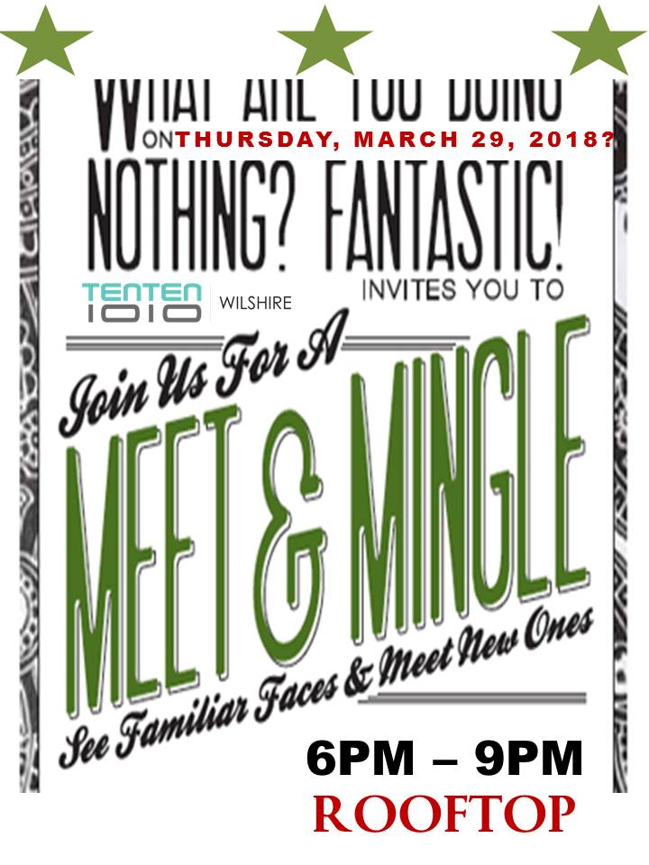 LOS ANGELES, March 14, 2018 (Newswire.com) - Just because there’s not much else going on in late March on Thursday night or even if there is Happy Hour on award-winning TENTEN Wilshire rooftop is pretty tough to beat. On Thursday, March 29, from 6:00 – 9:00 p.m., TENTEN invites tenants and friends to meet, mingle, and take in some of the most spectacular views in the city. What’s better than hanging with familiar faces and greeting new ones while sitting poolside and taking in the gorgeous LA sunset. As always, there will be food, drinks, fun, and plenty of fantastic folks to make it an especially happy evening.