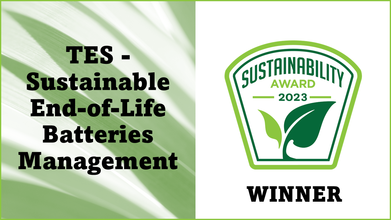 SINGAPORE, August 30, 2023 (Newswire.com) - As part of the 2023 Sustainability Awards program, the battery recycling service of Singapore-based TES was named today by the Business Intelligence Group as a Sustainability Service of the Year. The Sustainability Awards honor people, teams, and organizations worldwide that have made sustainability an integral part of their business practices or overall missions.